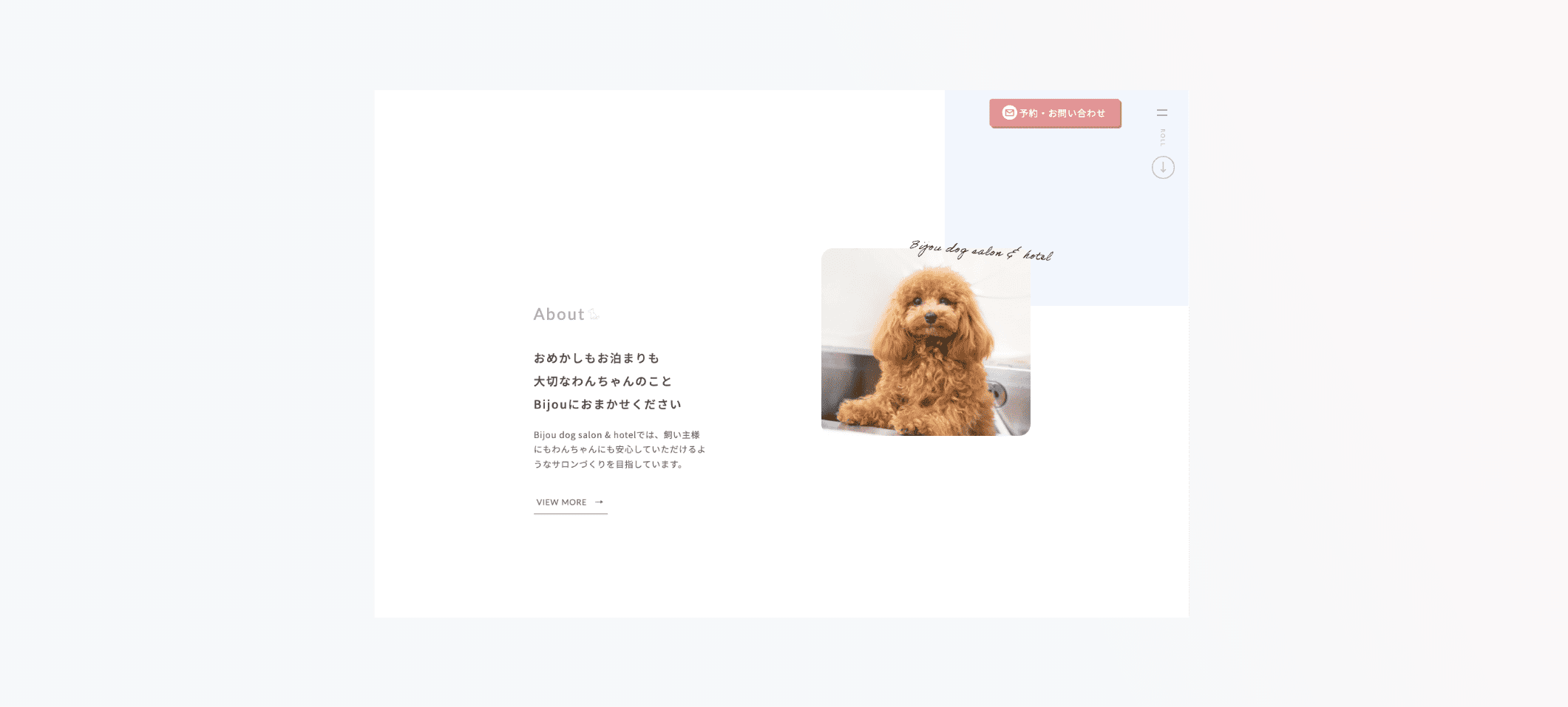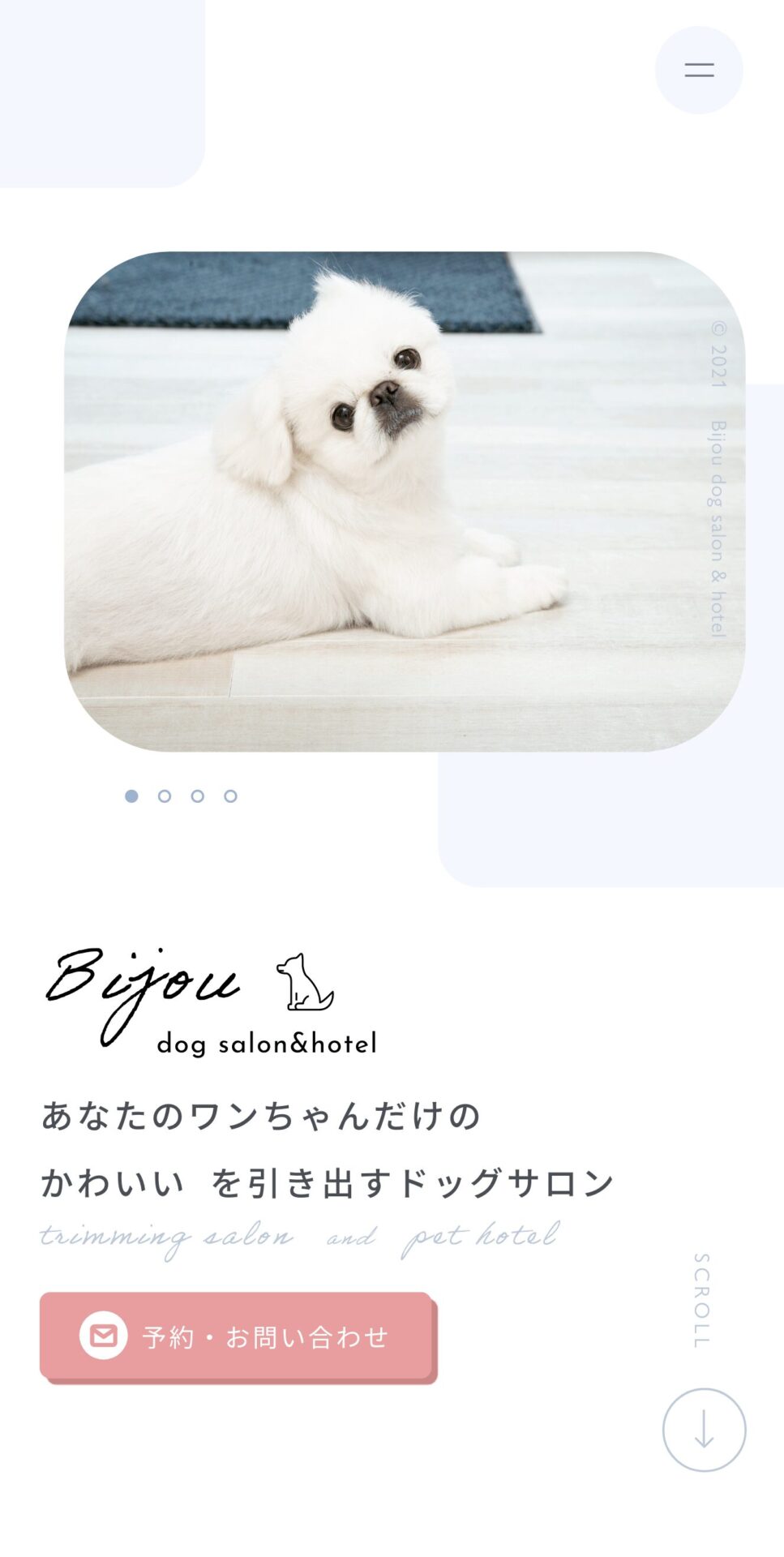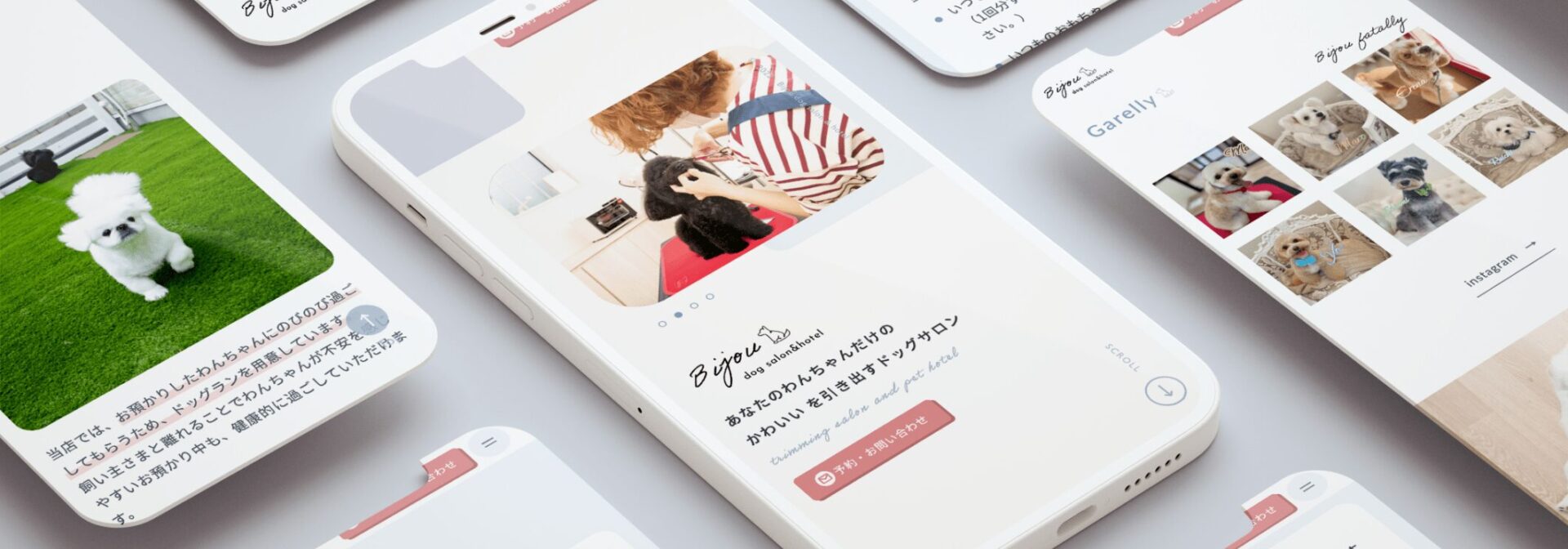 わんちゃん専用サロン・ホテルを運営するBijou dog salon & hotel様のショップサイト制作にてコーディングを担当しました。少人数のスタッフさんで営業されている店舗のため、Web上で24時間サロン・ホテルの予約申込みを受け付けられる機能を付けています。
