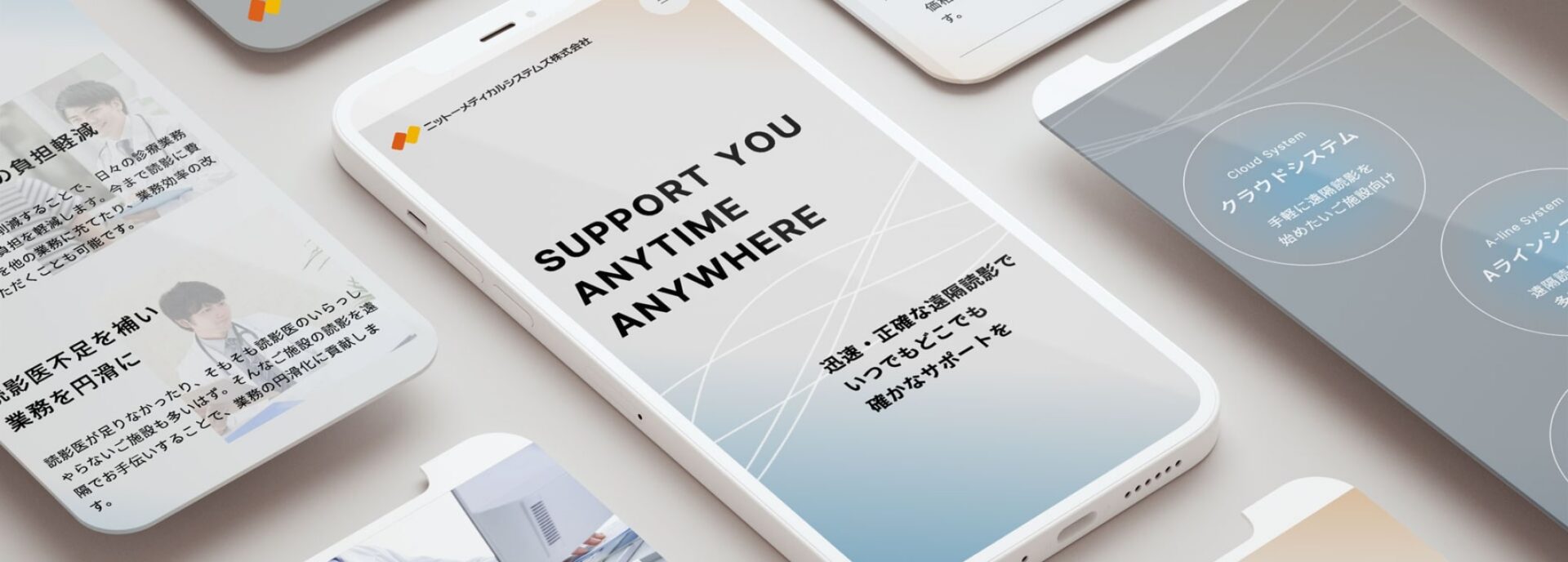 ニットーメディカルシステムズ株式会社様のコーポレートサイトをリニューアルさせていただきました。初めてメインでディレクションをお任せいただき、制作のほぼ全ての工程を担当しています。